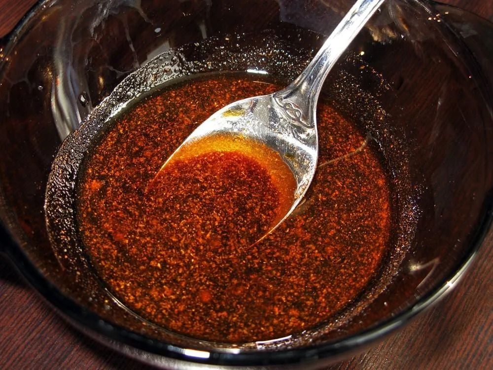 ШАГ 2 Смешайте в плошке соевый соус, кунжутное масло, сахар, чили, тертый чеснок, соль и перец. Баклажаны ополосните чистой водой, слегка отожмите лишнюю влагу. Сложите в большую миску курицу и баклажаны, влейте маринад и перемешайте. Оставьте мариноваться на 30 минут.