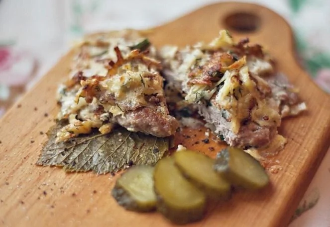 ШАГ 4 Выкладываем отбивные на слегка смазанный маслом противень, заливаем сливками и отправляем в раскаленную духовку на 20 минут.
