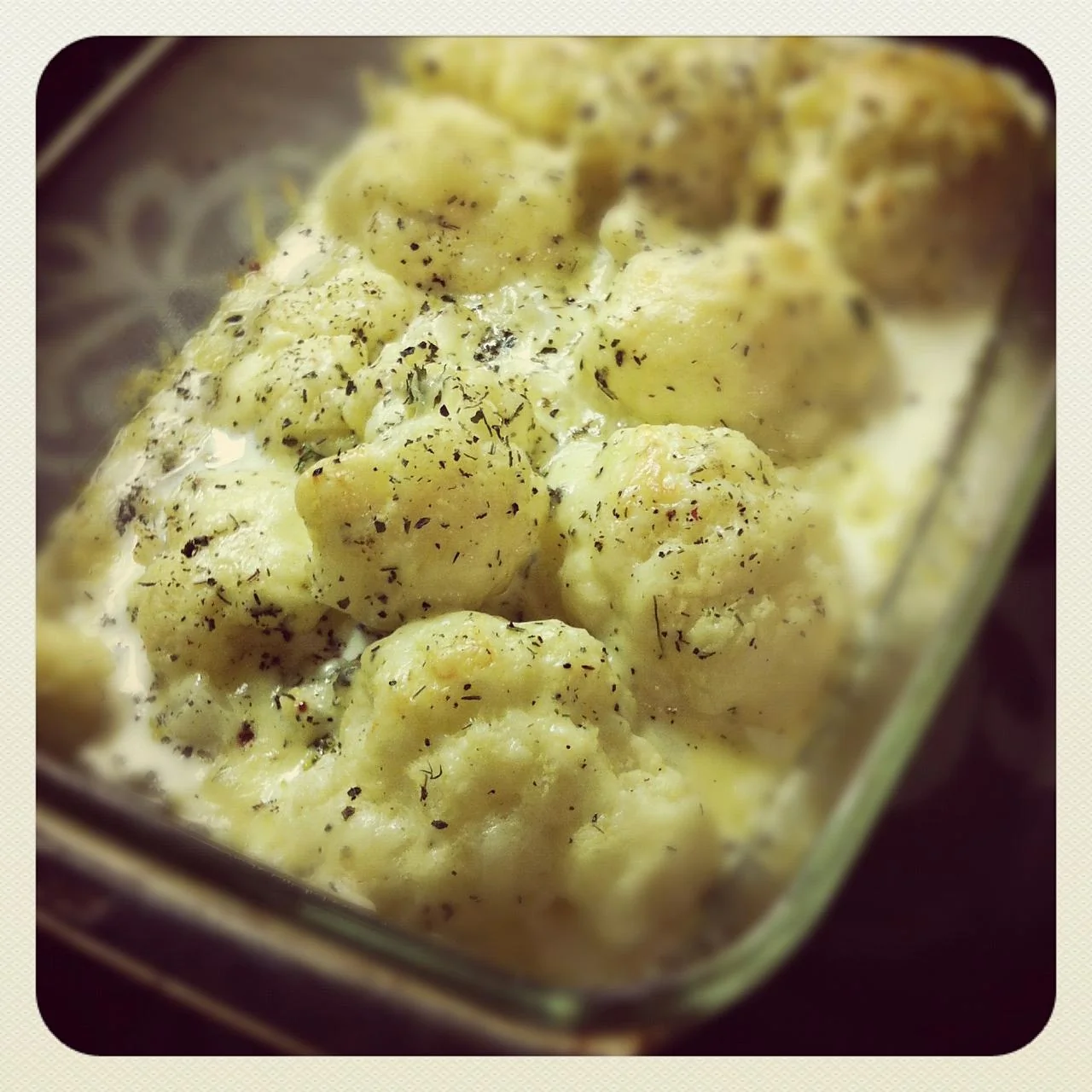 Цветная капуста в сливочном соусе, запеченная с сыром
