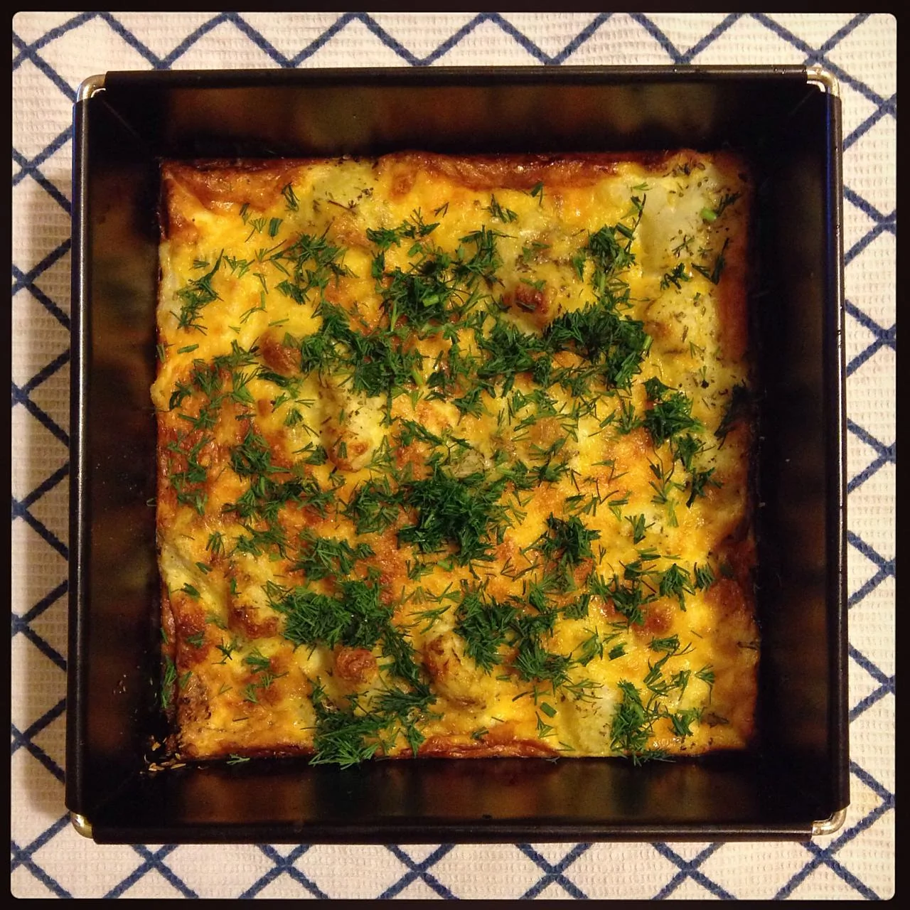 ШАГ 4 Поставить в духовку, разогретую до 200 градусов. Запекать в течение 15 минут до появления золотистой корочки на сыре. Затем выключить духовку и оставить потомиться еще минут на 20. Последним штрихом добавить мелко нарезанную зелень.