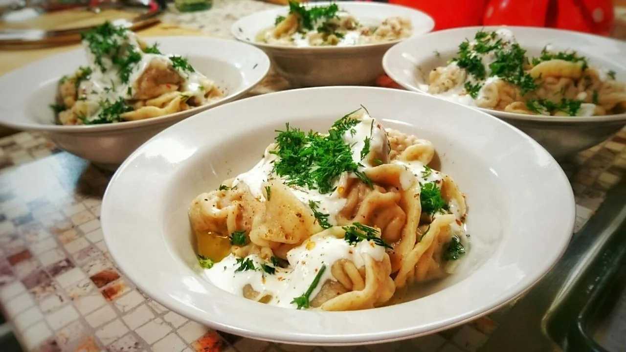 Пельмени из говядины и свинины с зеленью