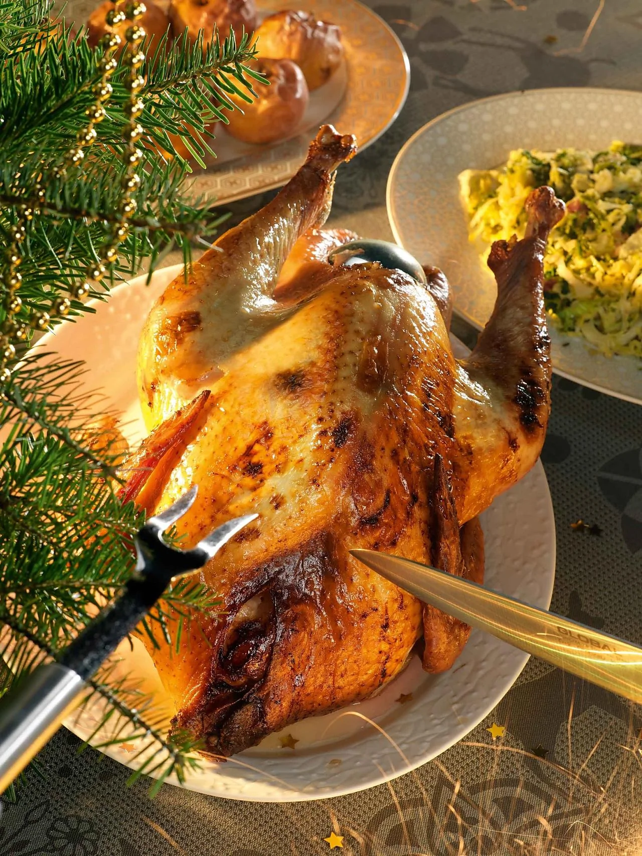 Индейка с яблоками и сладким шукрутом из савойской капусты