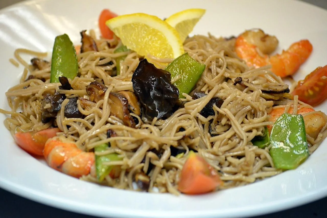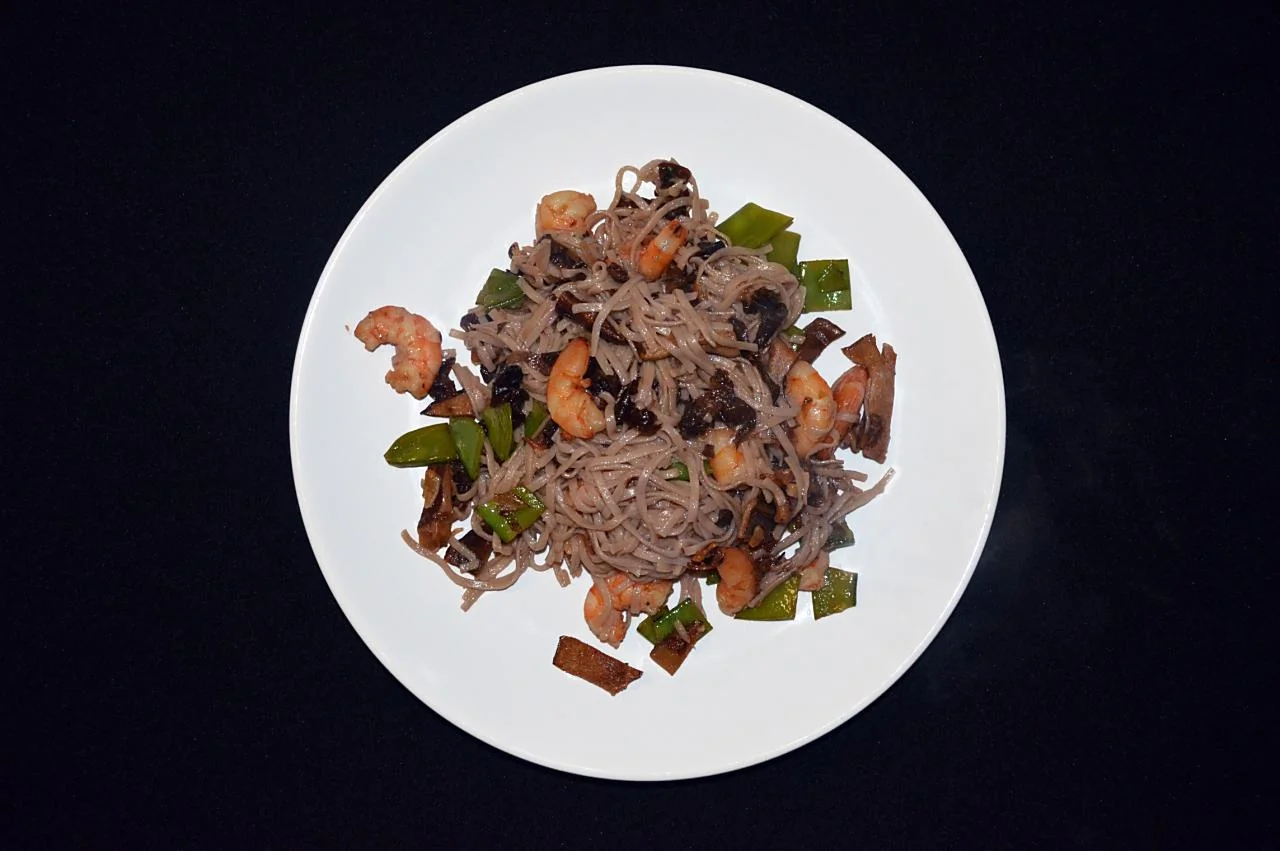 Ингредиенты для приготовления Гречневая лапша с грибами и королевскими креветками:
