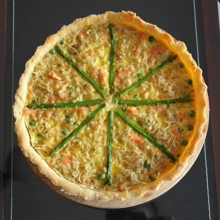 Киш с рисом, лососем и спаржей