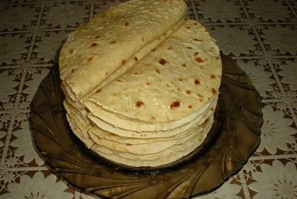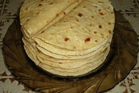 ШАГ 1 Приготовить тесто. Соединить все ингредиенты (0,5 стакана молока), замесить. Разрезать тесто на куски, раскатать тонкие лепешки, выпечь на раскаленной сухой сковороде с обеих сторон до румяной корочки. Готовые лепешки завернуть в салфетку, чтобы они стали мягкими.