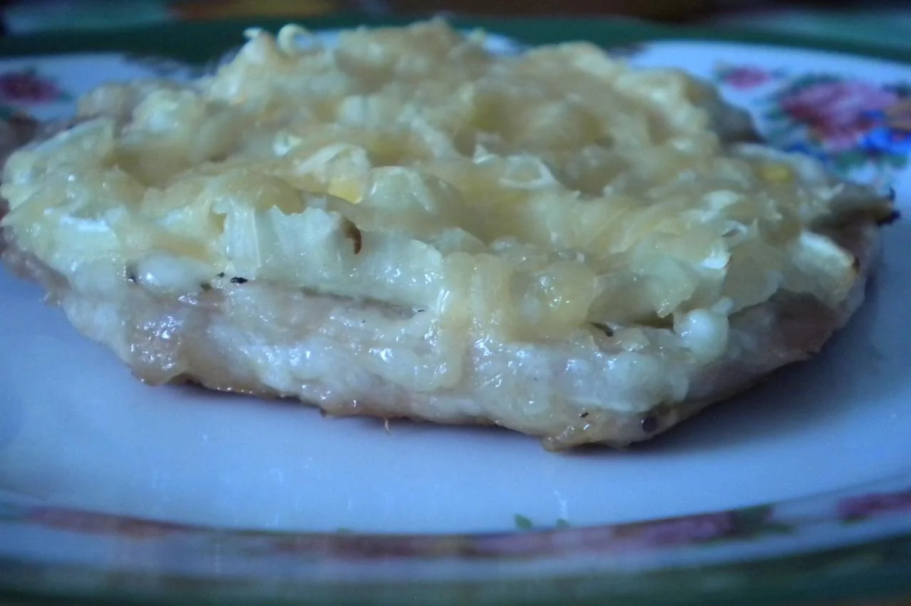 Свинина, запеченная с луком и сыром