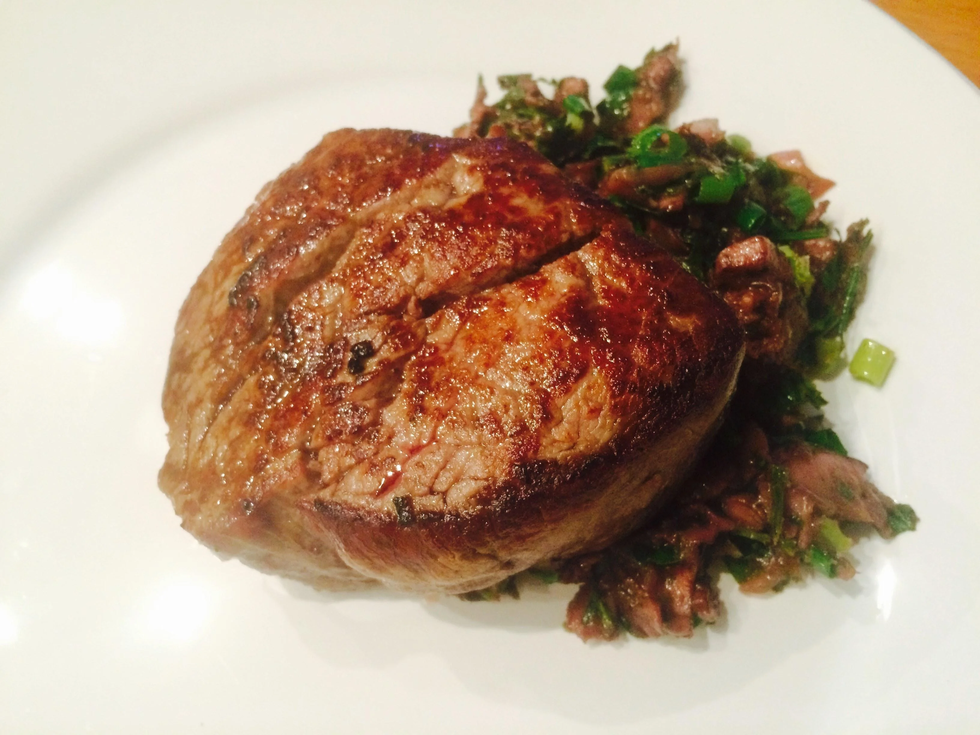 Филе миньон отправить в разогретую духовку на три минуты и потом подавать с загустевшим грибным соусом.