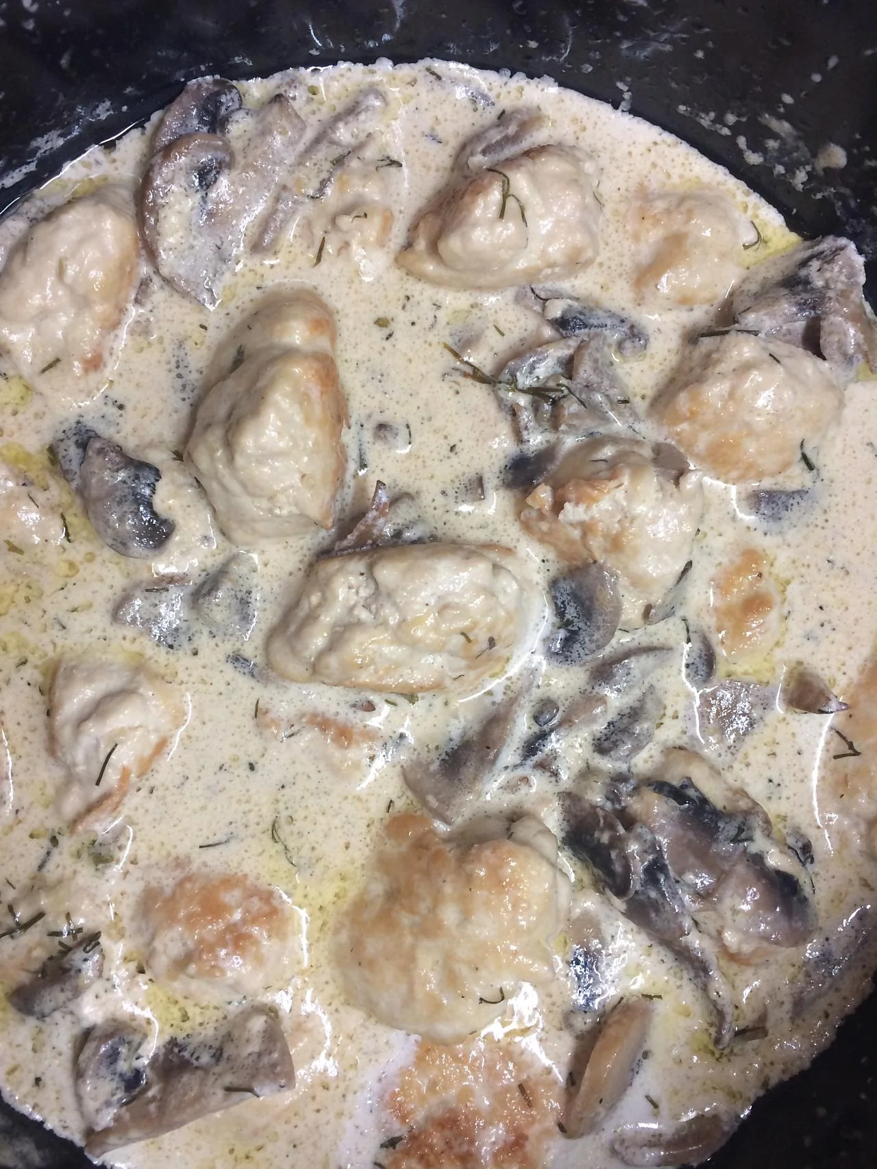ШАГ 1 Шампиньоны всегда беру только свежие. Соответственно, моем и чистим каждый гриб. Нарезаем небольшими тонкими пластиками (1,5х1,5 см). Выкладываем на раскаленную сковороду, предварительно вылив туда 1 столовую ложку растительного масла. Обжариваем минут 5–7, затем кладем туда же сливочное масло. Продолжаем обжаривать до тех пор, пока сливочное масло не растопится, а грибочки немного не подрумянятся. Готовые шампиньоны выкладываем в сотейник. Заливаем сливками и доводим до кипения на медленном огне.