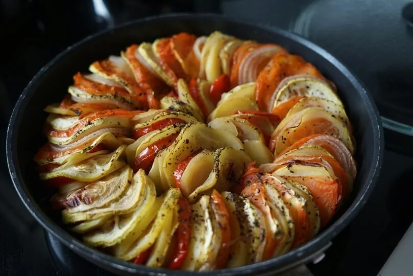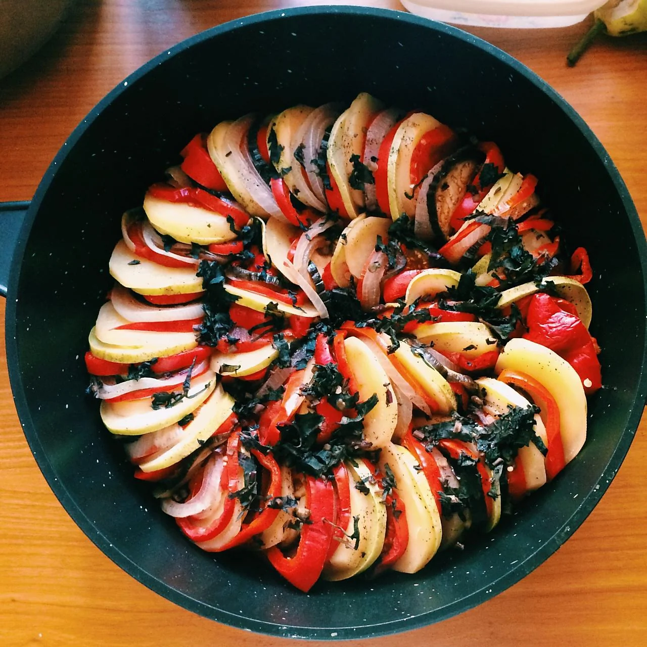 ШАГ 1 Берем все овощи, нарезаем их на плоские круглые кусочки, толщиной не более 5 мм.