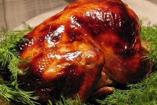ШАГ 3 Смешать ингредиенты для соуса. Обмазать курицу кисточкой половиной соуса.