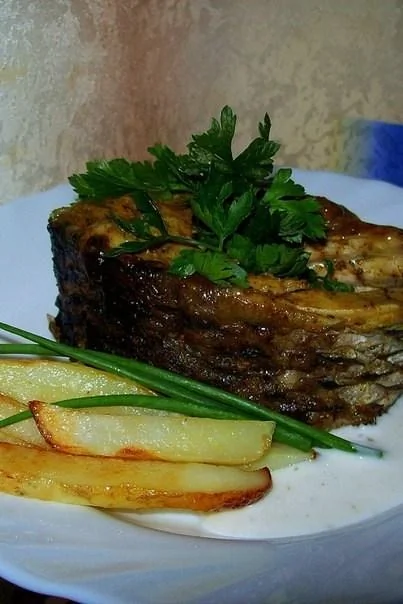 ШАГ 3 Готовую рыбу подать, полив маслом. На гарнир подойдет жареный картофель.