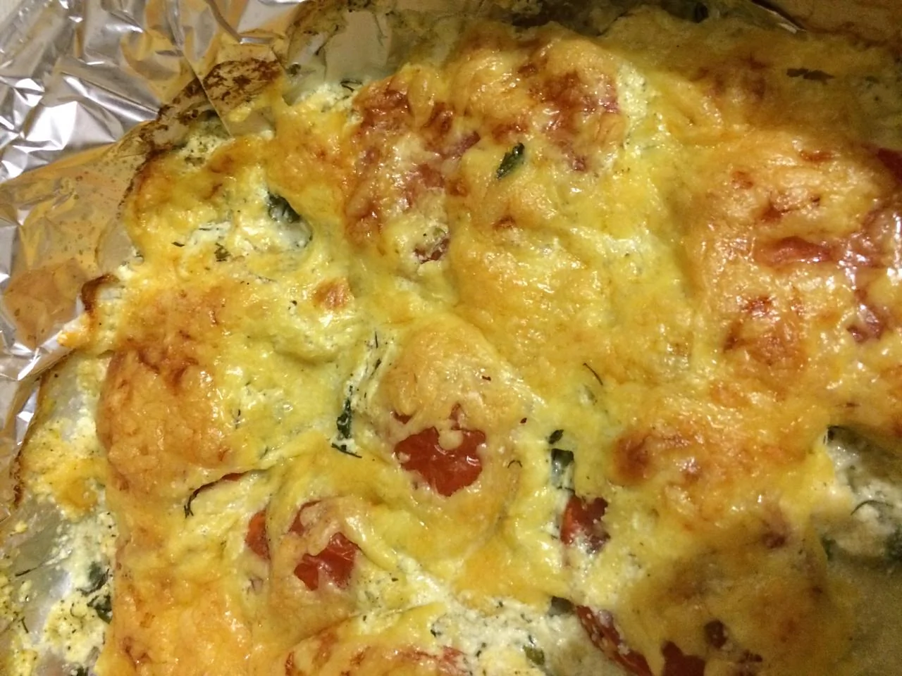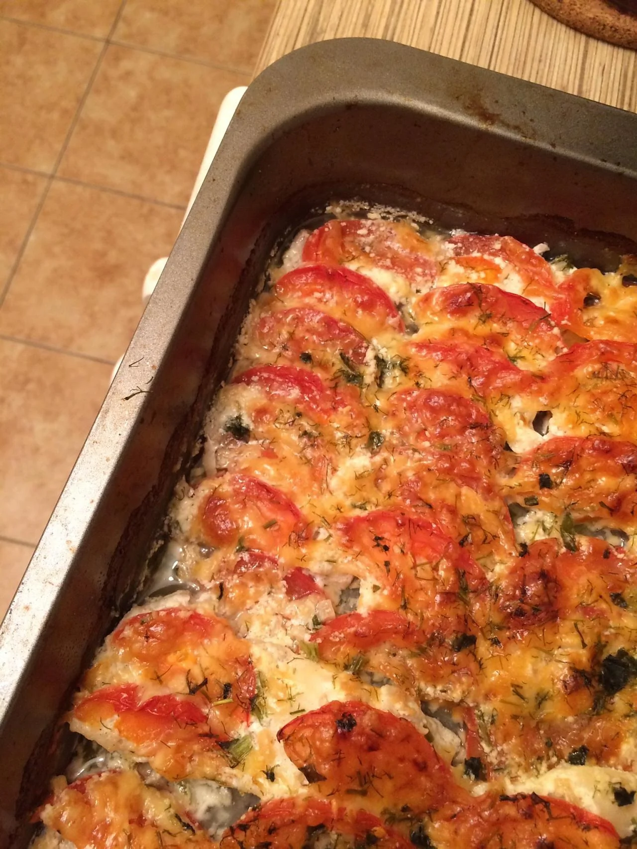 Рыба, запеченная с помидорами и сыром
