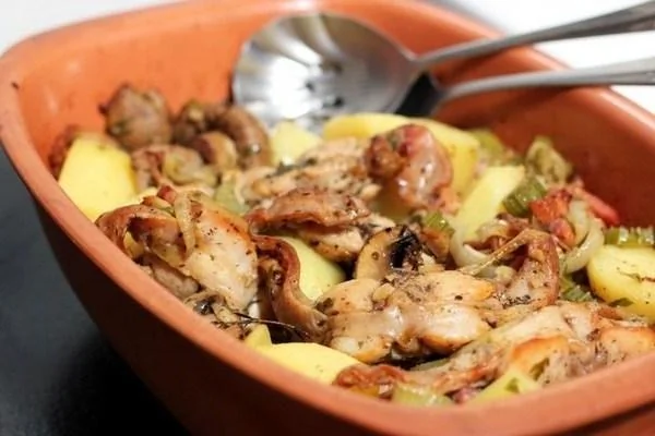 Кролик с грибами в горшочке