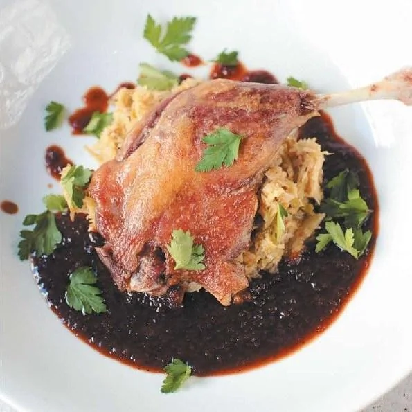 ШАГ 1 Для начала маринуем утиную ножку — то есть натираем ее морской солью (5 грамм) и цедрой апельсина. Добавляем тимьян. Выдерживаем в таком состоянии четверть часа, после чего тщательно моем.