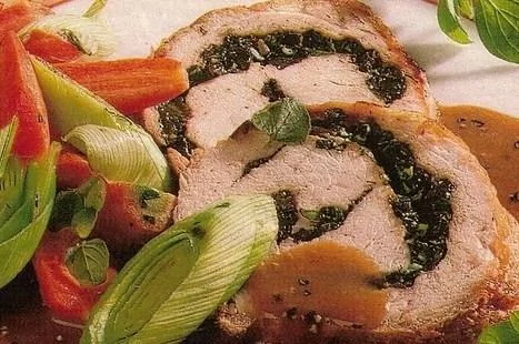 Рулетики из индейки со шпинатом и сыром в беконе