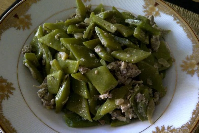 Фасоль зеленая стручковая в фарше с яйцом