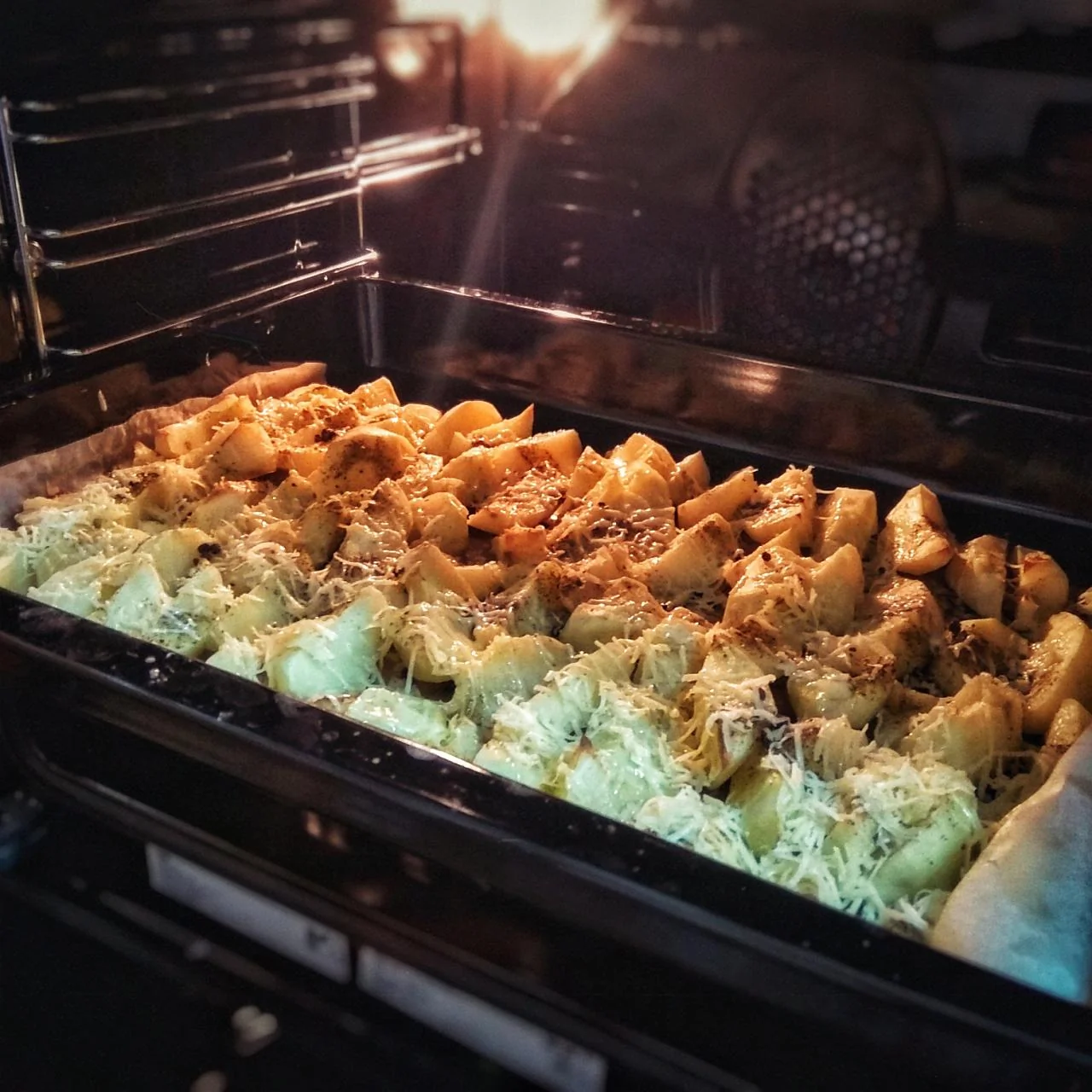 ШАГ 5 Картофель выпекаем около 20 минут. За 5 минут до готовности посыпаем картофель тертым сыром.