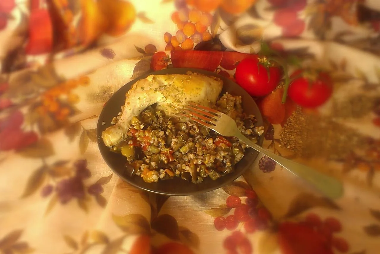 Ингредиенты для приготовления Курица с гречкой и овощами по деревенски: