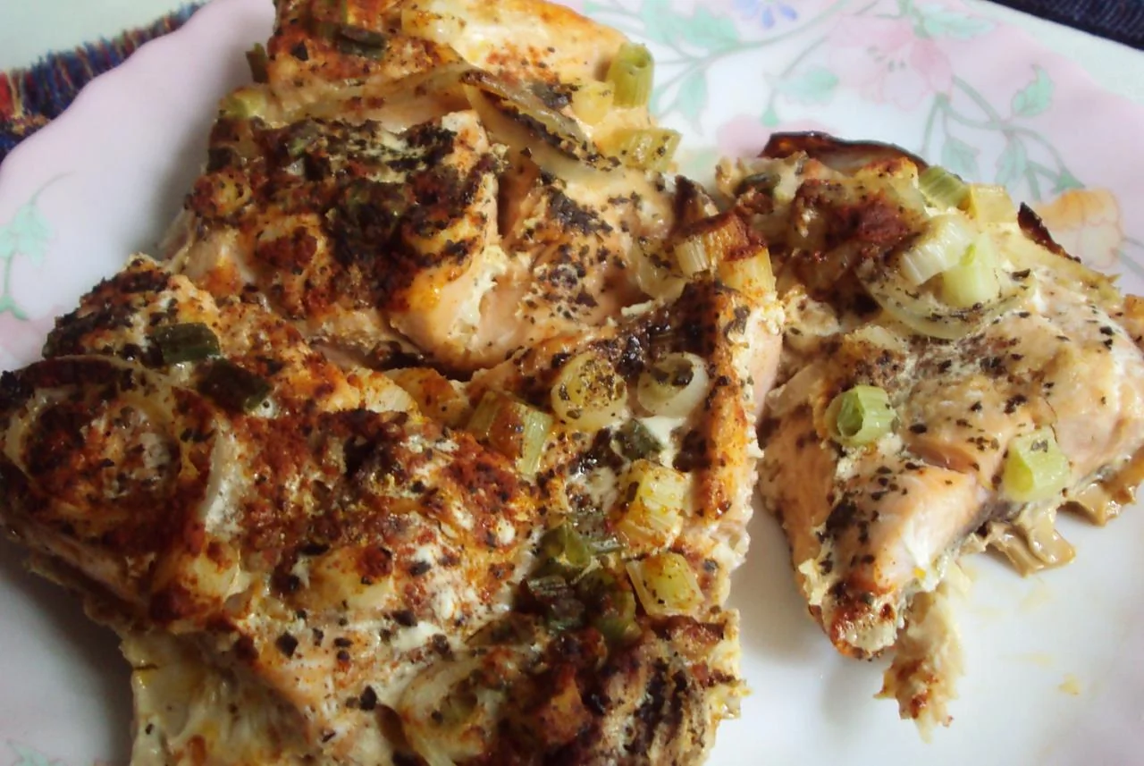 Запеченная горбуша под луком