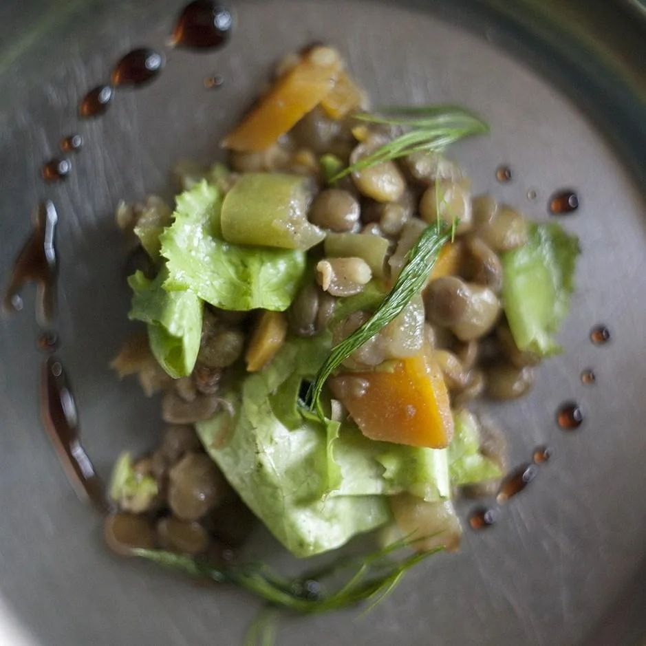 Чечевица с салатными листьями и зеленью укропа