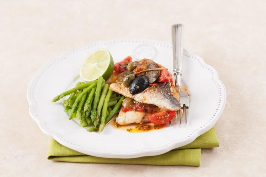 Ингредиенты для приготовления Дорада в соусе палермитано со спаржей и лаймом: