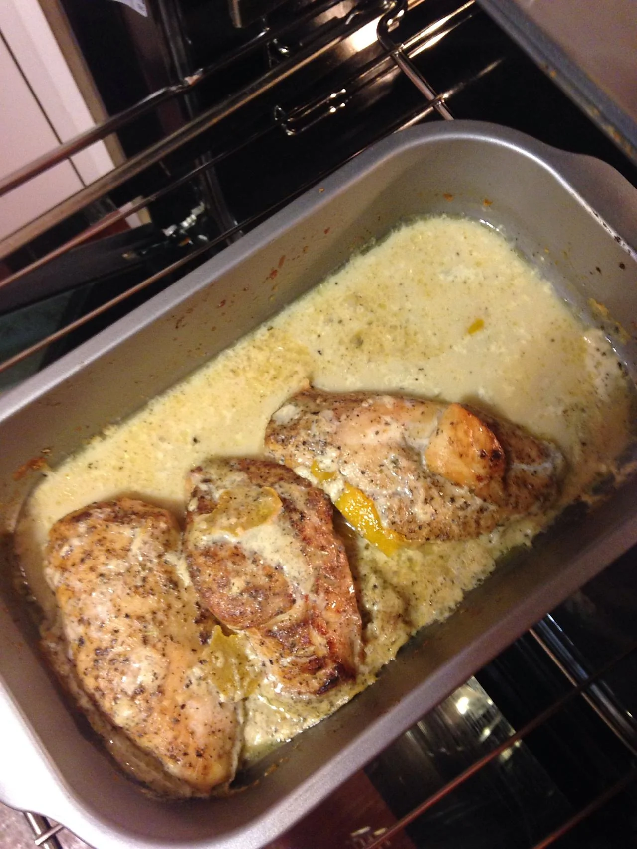 ШАГ 4 Как соус закипит, вылить его на курицу и поставить в духовку, разогретую до 200 градусов, на 30 минут. В течение этого времени обязательно курицу поливать соусом, раз 5–6 — в этом и есть секрет сочности этого блюда.