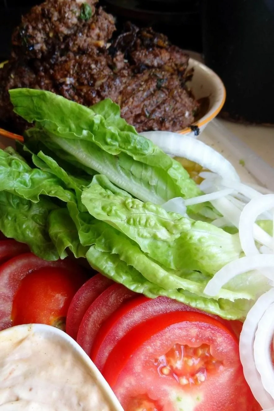 Ингредиенты для приготовления Гамбургер в листьях салата по ванкуверски: