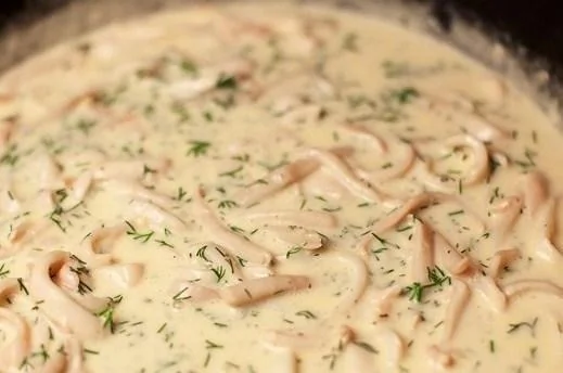 Ингредиенты для приготовления Кальмары, тушеные в сметане: