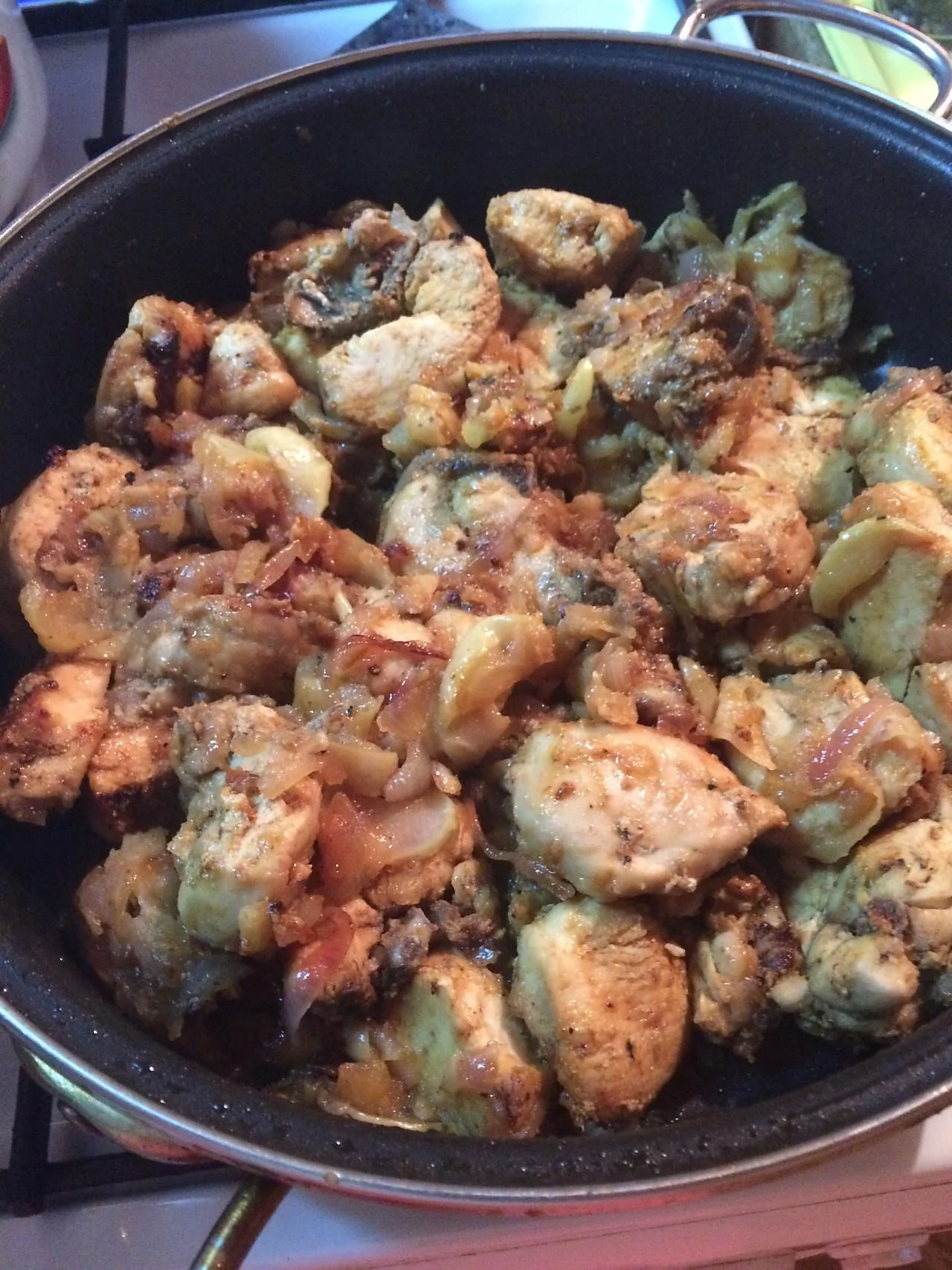 ШАГ 3 Когда курица приготовится, убираем ее со сковороды и перекладываем в тарелку.