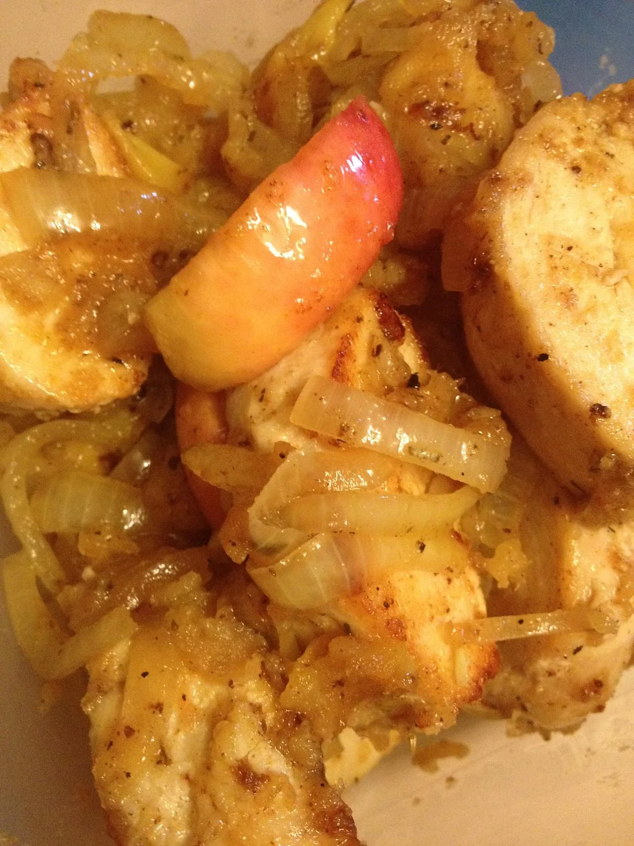 Ингредиенты для приготовления Куриная грудка с карамелизированными яблоками и луком:
