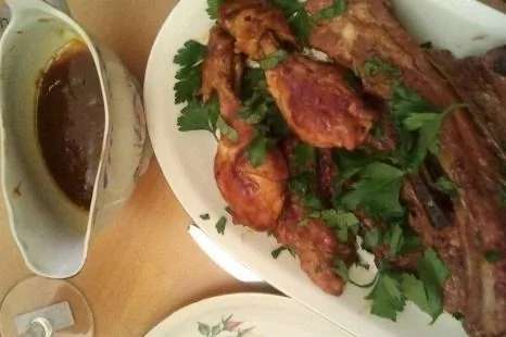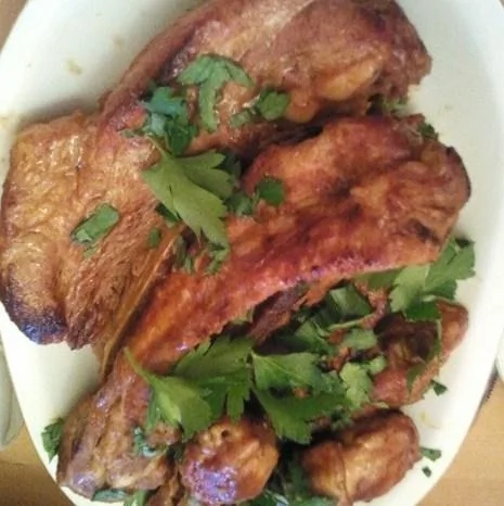 ШАГ 4 Обжарить ребрышки до золотистой корочки, выложить на блюдо. В сковородку вылить маринад и дать ему «забулькать» (не больше минуты держать на огне). Соус отдельно подавать. Мясо украсить петрушкой.