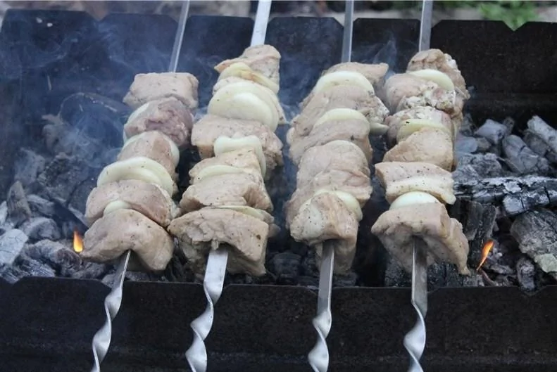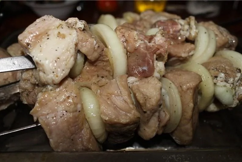 Шашлык из свинины, маринованный в водке с медом