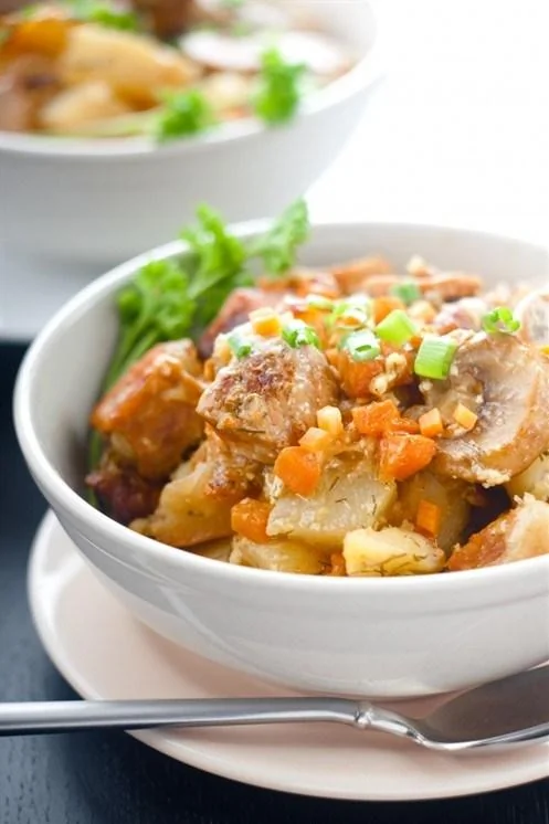 ШАГ 3 Очищенный и порезанный кружочками картофель киньте к мясу, когда будет уже почти готово. Жарьте на медленном огне до готовности.