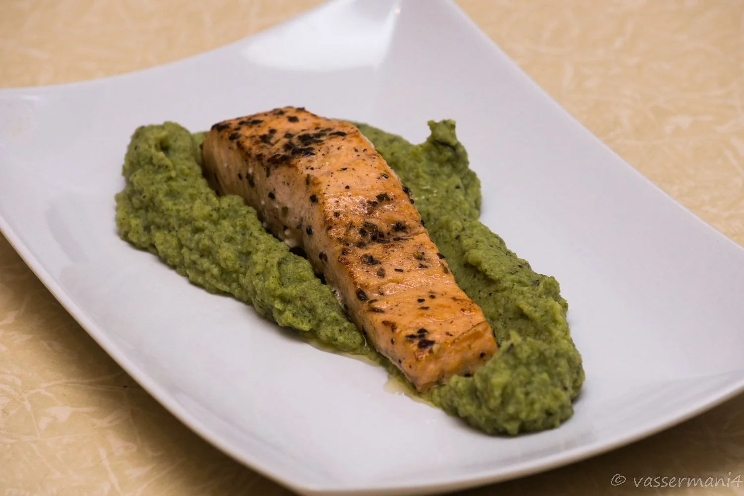 Лосось с прованскими травами и пюре из брокколи