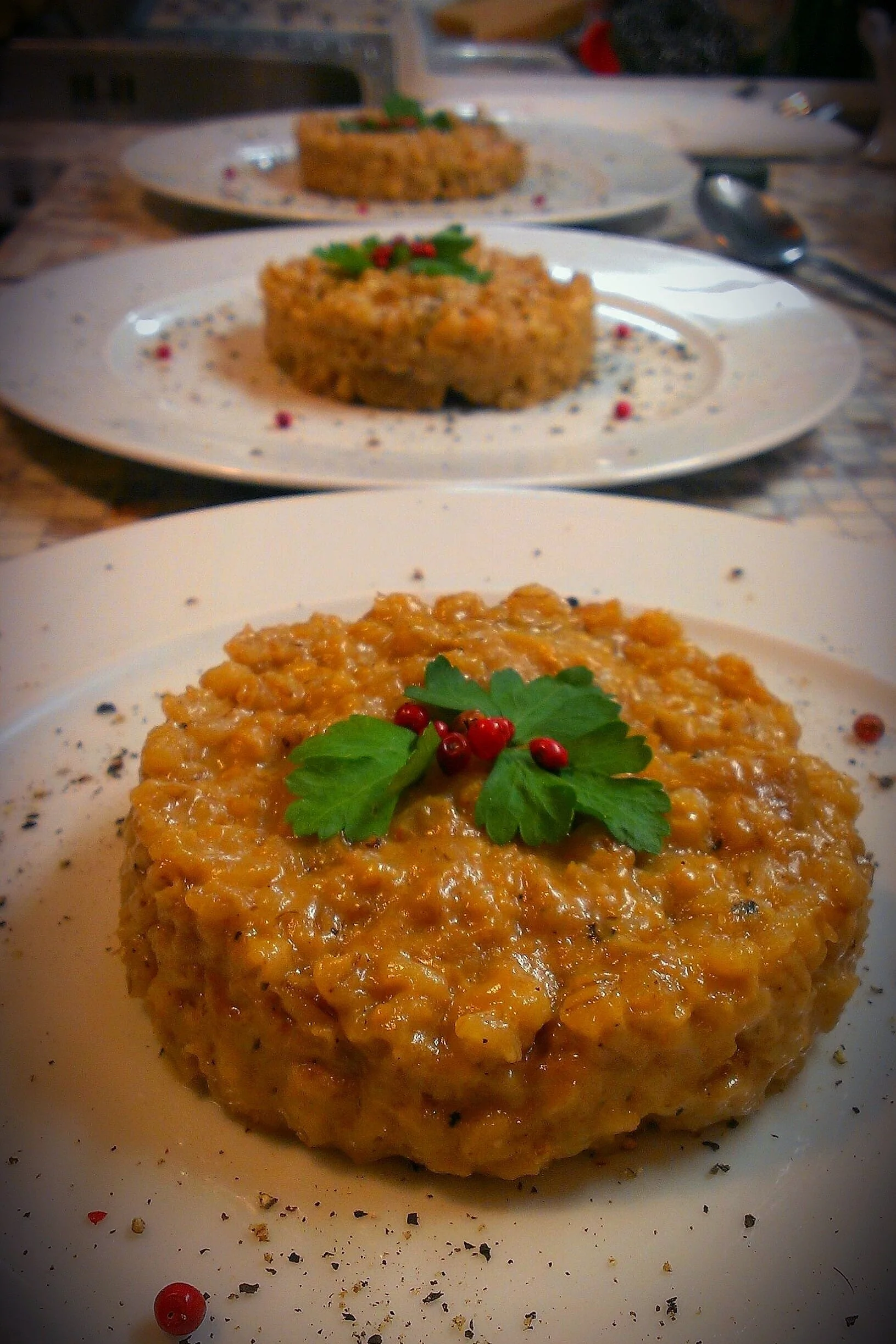 ШАГ 6 После чего, постоянно подливая к перловке с грибами горячий бульон, по типу ризотто, на среднем огне, довести блюдо до готовности.