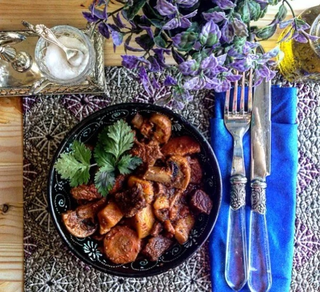 Мясное рагу с овощами и грибами