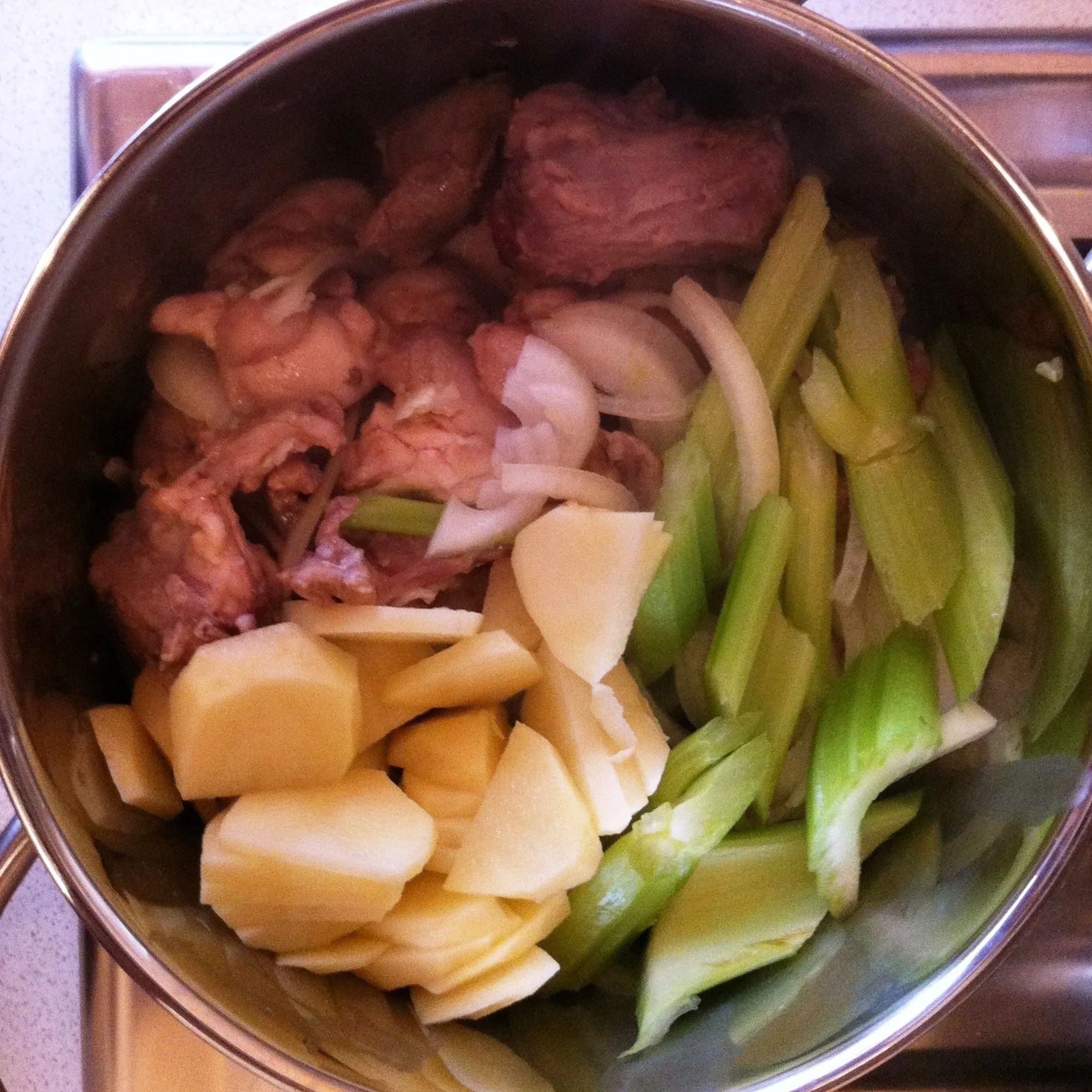 ШАГ 5 Сельдерей (крупный стебель) нарезать мелко. Я режу на 3–4 части, потому что моя дочь его не любит в еде, перед подачей приходится вытаскивать.