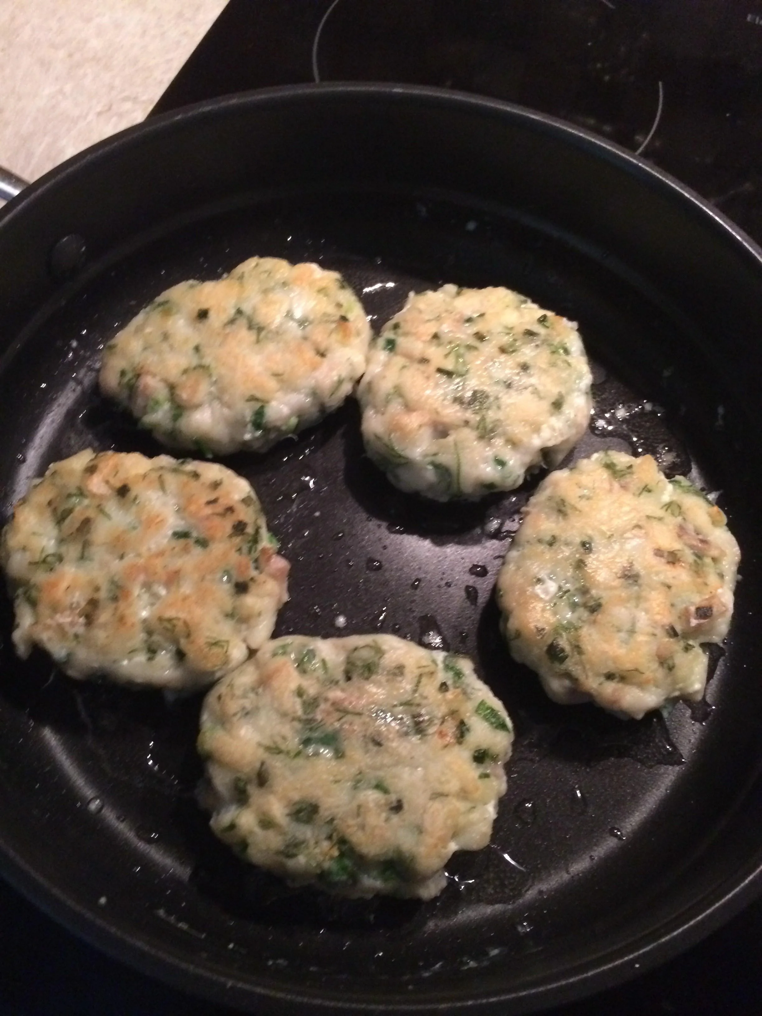 ШАГ 1 Филе белой рыбы мелко рубим, перемешиваем с яйцами, мукой, сахаром, мелко нарезанным луком, сахаром и рубленой зеленью, солим, перчим. Хорошо взбиваем руками, чтобы фарш получился плотным, но легким. Ставим в холодильник на час.