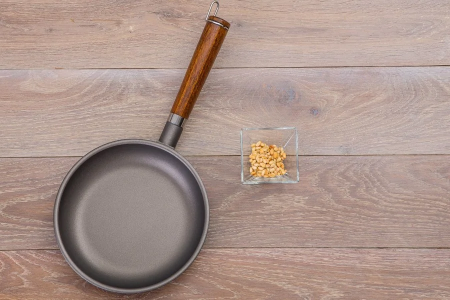 ШАГ 3 Кедровые орешки слегка поджарьте на среднем огне в течение 1 минуты, переложите в тарелку.