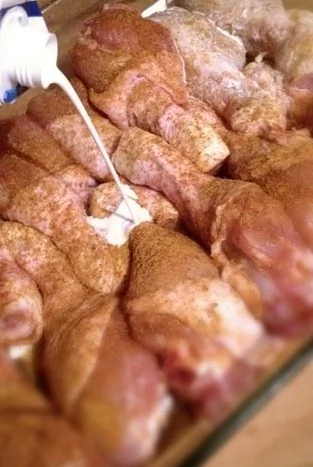 ШАГ 3 Залить 10% сливки в посуду с курицей до середины.