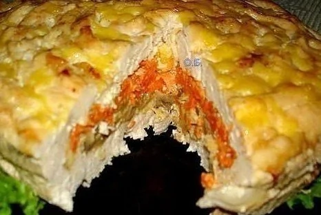 ШАГ 7 Запекать при температуре 200 градусов около 30 минут. Пирог даст много сока, через 30 минут.