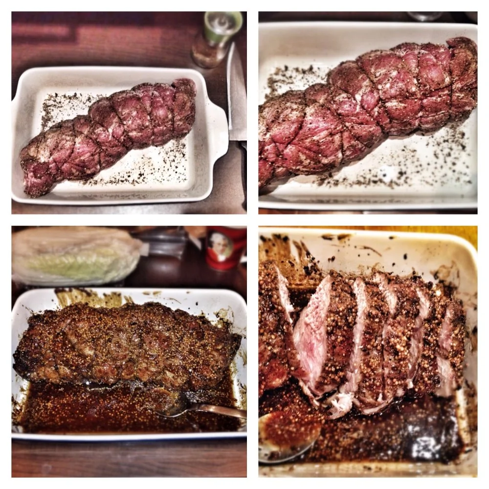 ШАГ 3 Измельчить черный перец и обвалять в нем мясо. Поставить запекать в предварительно разогретую духовку при 160 градусах на 1–1,5 часа.