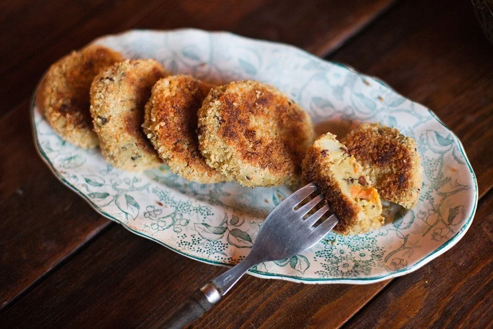 ШАГ 3 Катаем небольшие аккуратные котлетки и обваливаем их в панировочных сухарях. Обжариваем в масле на среднем огне до золотистой корочки.