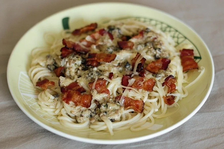 Ингредиенты для приготовления Спагетти с беконом и чесноком: