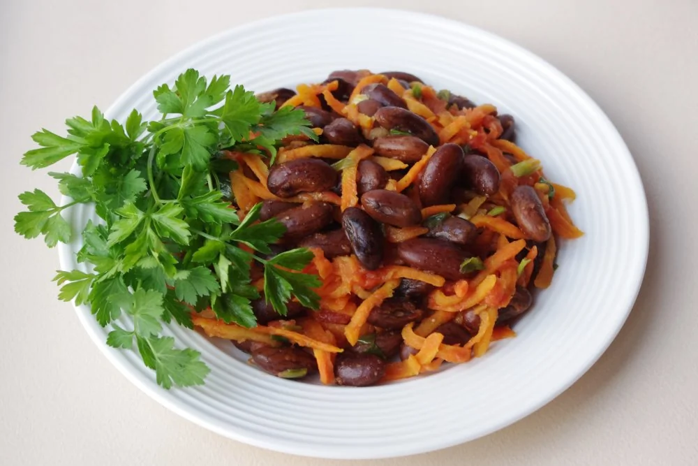 ШАГ 4 Полученной массой заправить фасоль. По желанию, перед подачей можно добавить мелко порубленную зелень.