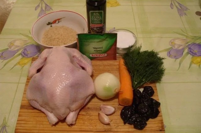 Ингредиенты для приготовления Курица, фаршированная рисом и черносливом: