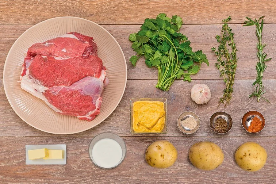 Ингредиенты для приготовления Баранья нога, запеченная в панировке из горчицы и ароматных трав, с картофельным пюре: