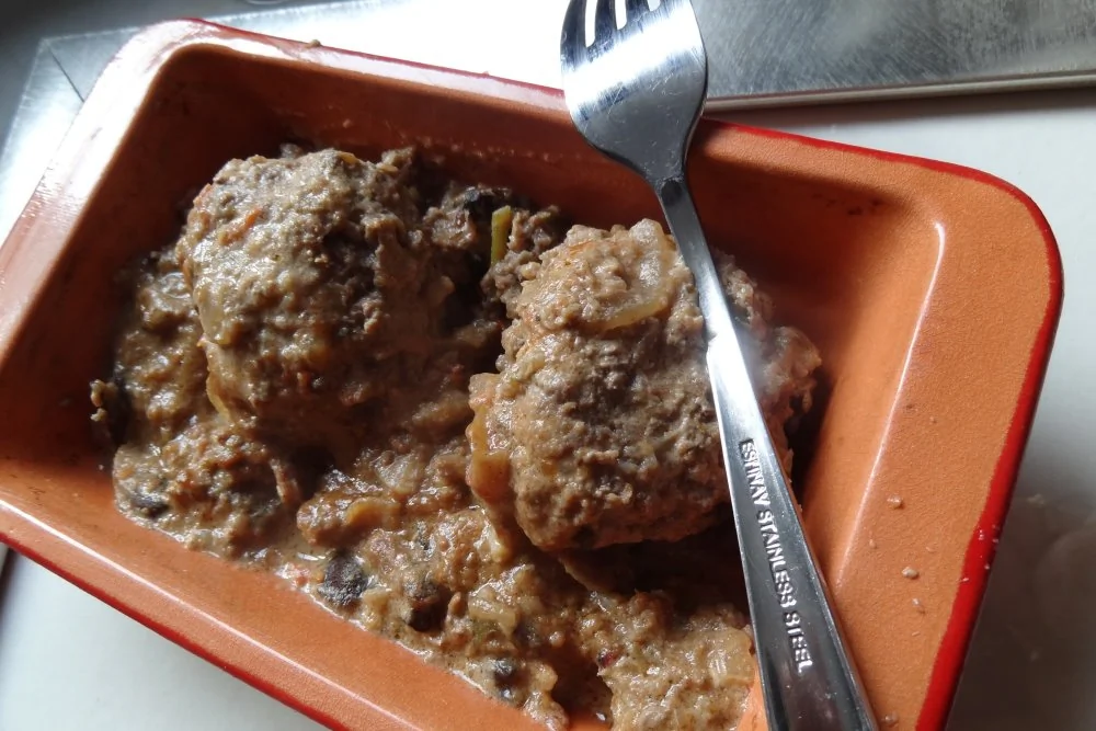 Ингредиенты для приготовления Фрикадели по строгановски в яблочном сидре с грибами: