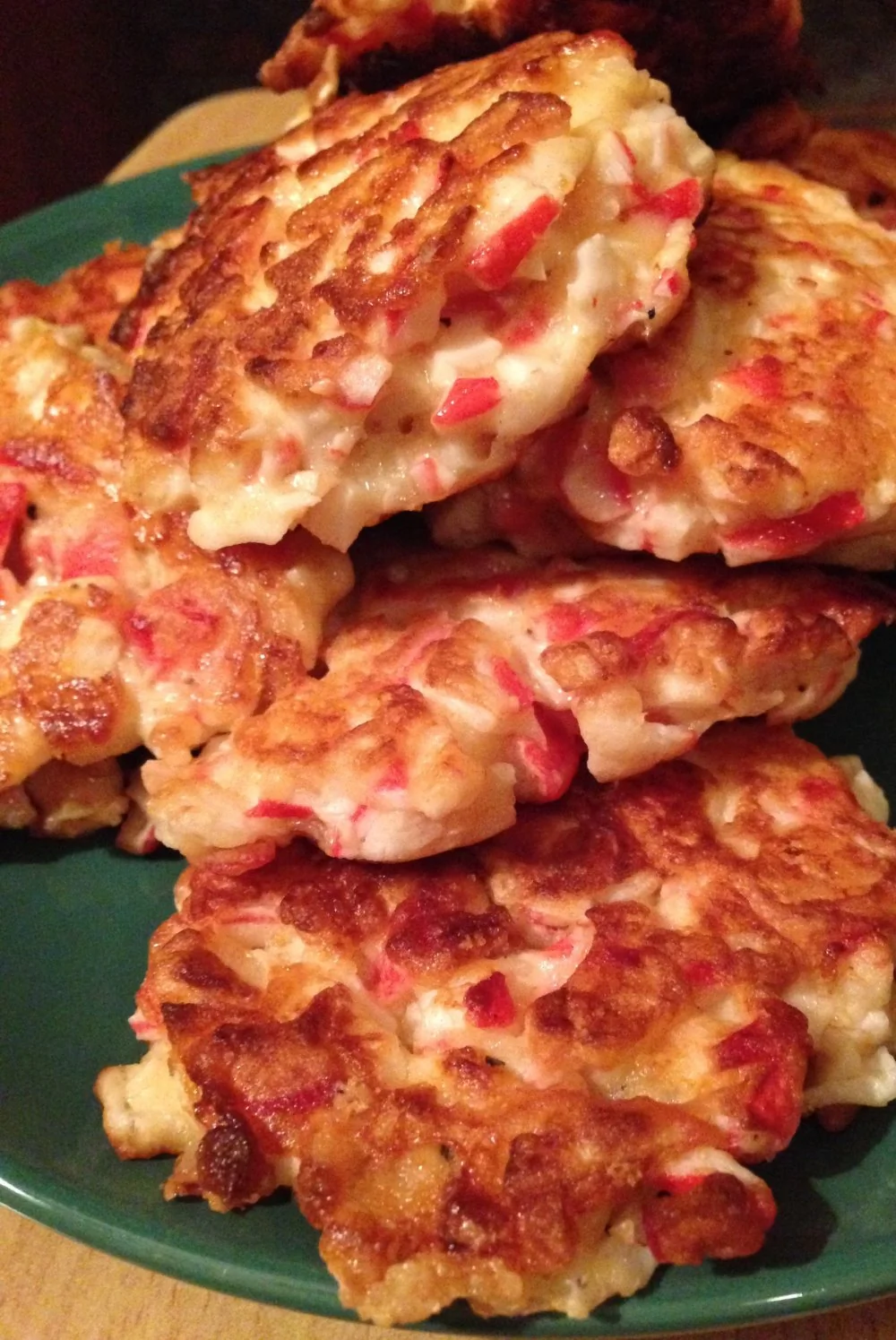 ШАГ 2 Сыр потереть на крупной терке, добавить к крабовому мясу, положить муку, соль, перец, и снова все тщательно перемешать.
