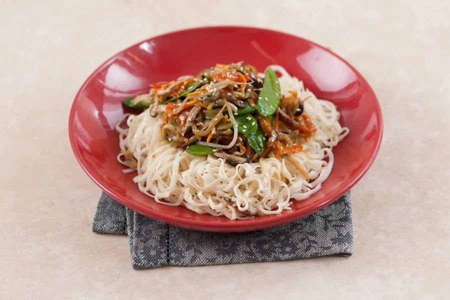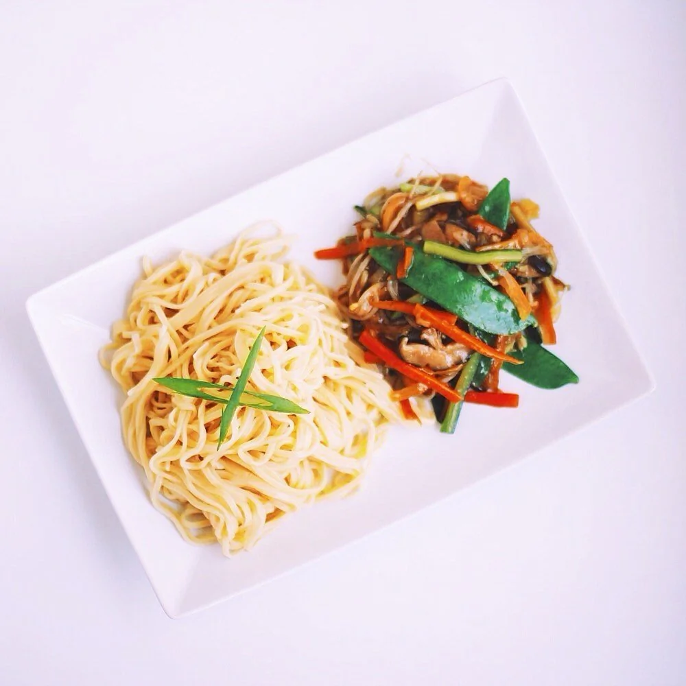 Овощи стир-фрай на яичной лапше